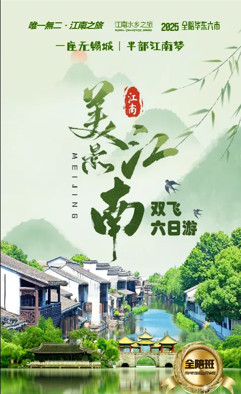 全景江南-杭州+蘇州+南京雙高五日游(杭州進南京出,不走回頭路)